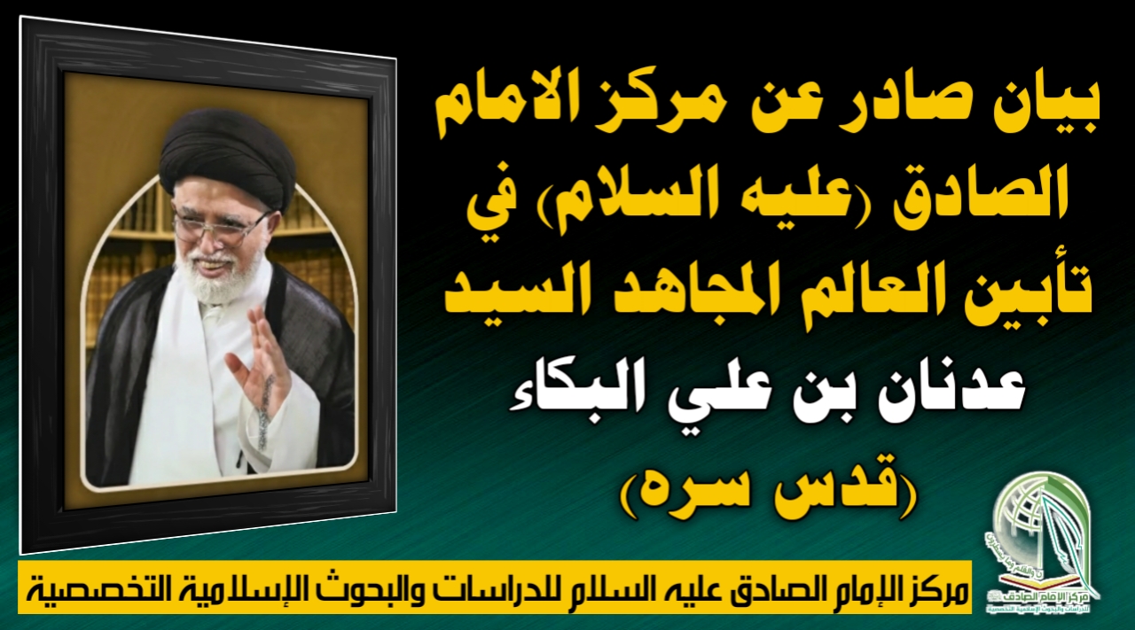 بيان صادر عن مركز الإمام الصادق (عليه السلام) في تأبين العالم المجاهد السيد عدنان بن علي البكاء (قدس سره)